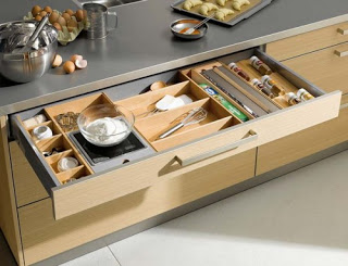 Practical cabinets make day-to-day chores easy and enjoyable. They use every inch available and give access to the very back of drawers and allow us to keep everything we need for specific tasks together.